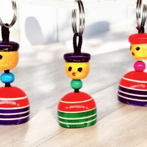 Handcrafted in the famous Channapatna toy town of Karnataka, this colorful set of 5 wooden key chains showcases traditional lacquerware art. Made from safe, eco-friendly ivory wood and finished with natural dyes, each key chain features a playful doll design in vibrant hues. Durable, lightweight, and charming, these key chains are perfect as everyday accessories, gifts, or souvenirs, reflecting the joy of Indian craftsmanship.