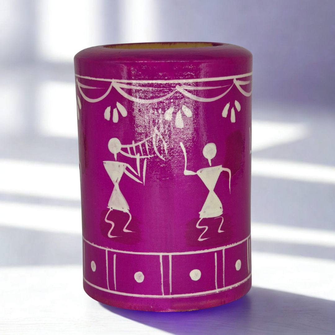Crafted from eco-friendly wood and natural colors, this pen stand is not just an accessory but also a symbol of sustainable Indian handicrafts.