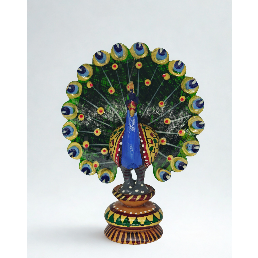 Channapatna Wooden Decorative Peacock – Handcrafted (11 cm)