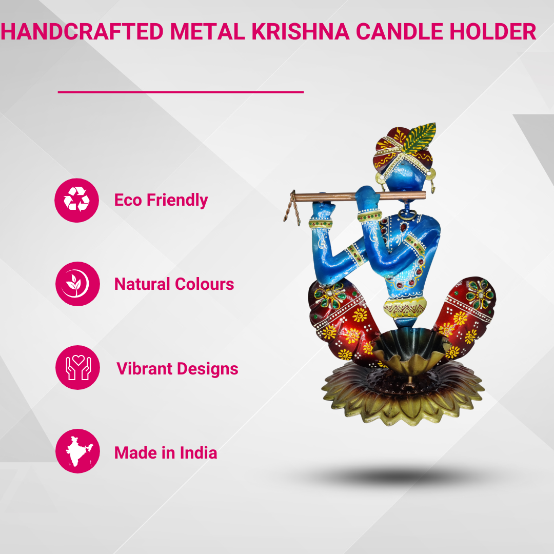 • Handcrafted Metal Krishna Candle holder