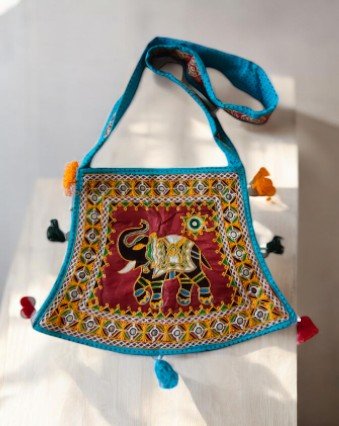 Carry a touch of Rajasthani heritage with this Traditional Jaipuri Embroidered Bag. Handcrafted from durable cotton fabric, this bag features intricate multicolour embroidery with a vibrant red base. Measuring 32 cm x 33 cm, it is spacious enough for your daily essentials while adding a cultural and stylish flair to your look.