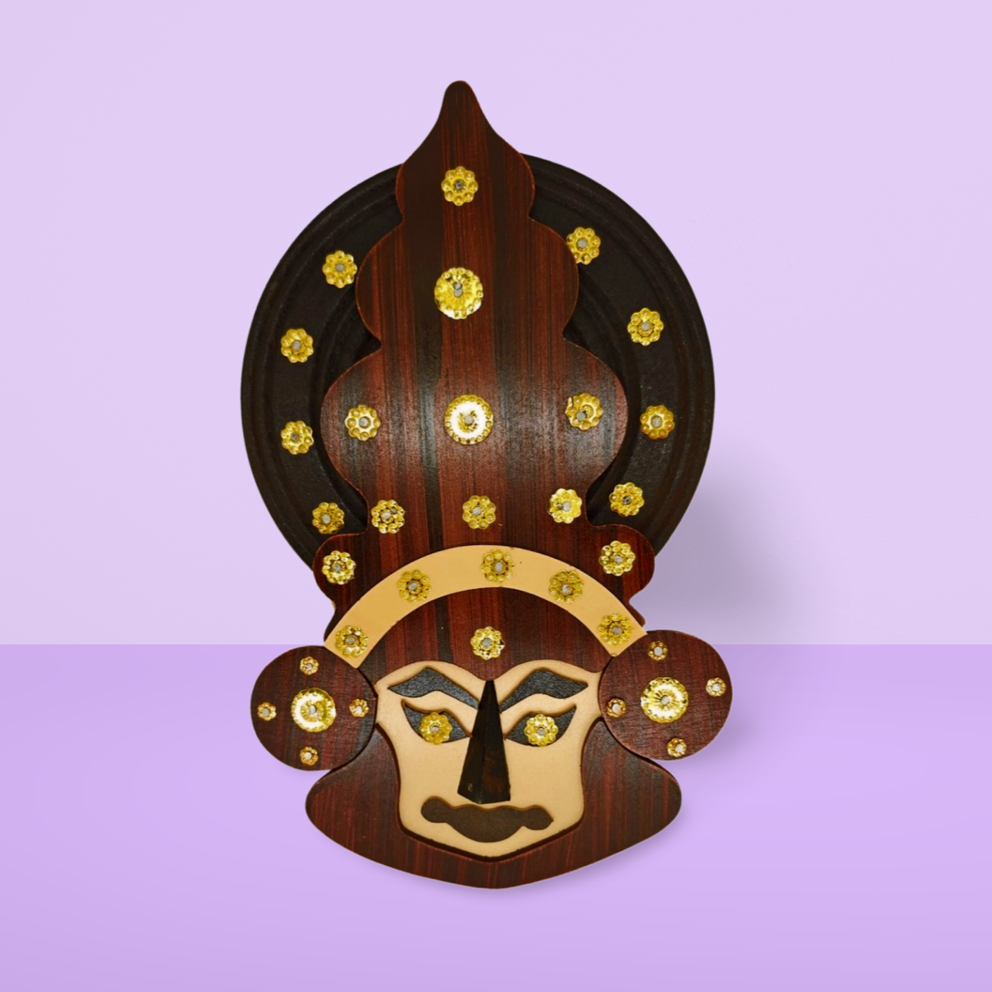 Celebrate the rich heritage of Kerala with this handcrafted Wooden Kathakali Face. Intricately designed using Channapatna craft techniques, this décor piece captures the grandeur of the classical dance form Kathakali. Made from natural wood with golden embellishments, it is eco-friendly, vibrant, and perfect for wall décor, home decoration, or gifting. A unique cultural artifact that adds elegance and traditional charm to any space.