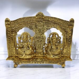Handcrafted metal frame with detailed Lakshmi and Ganesha idols