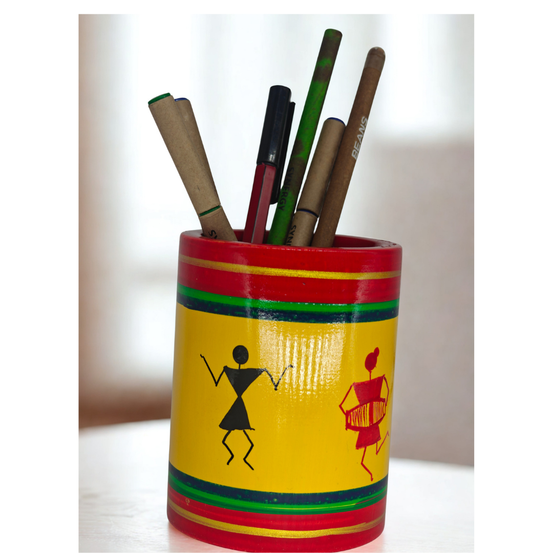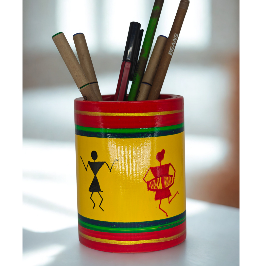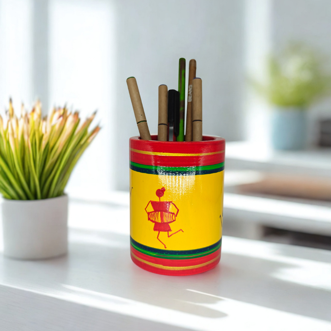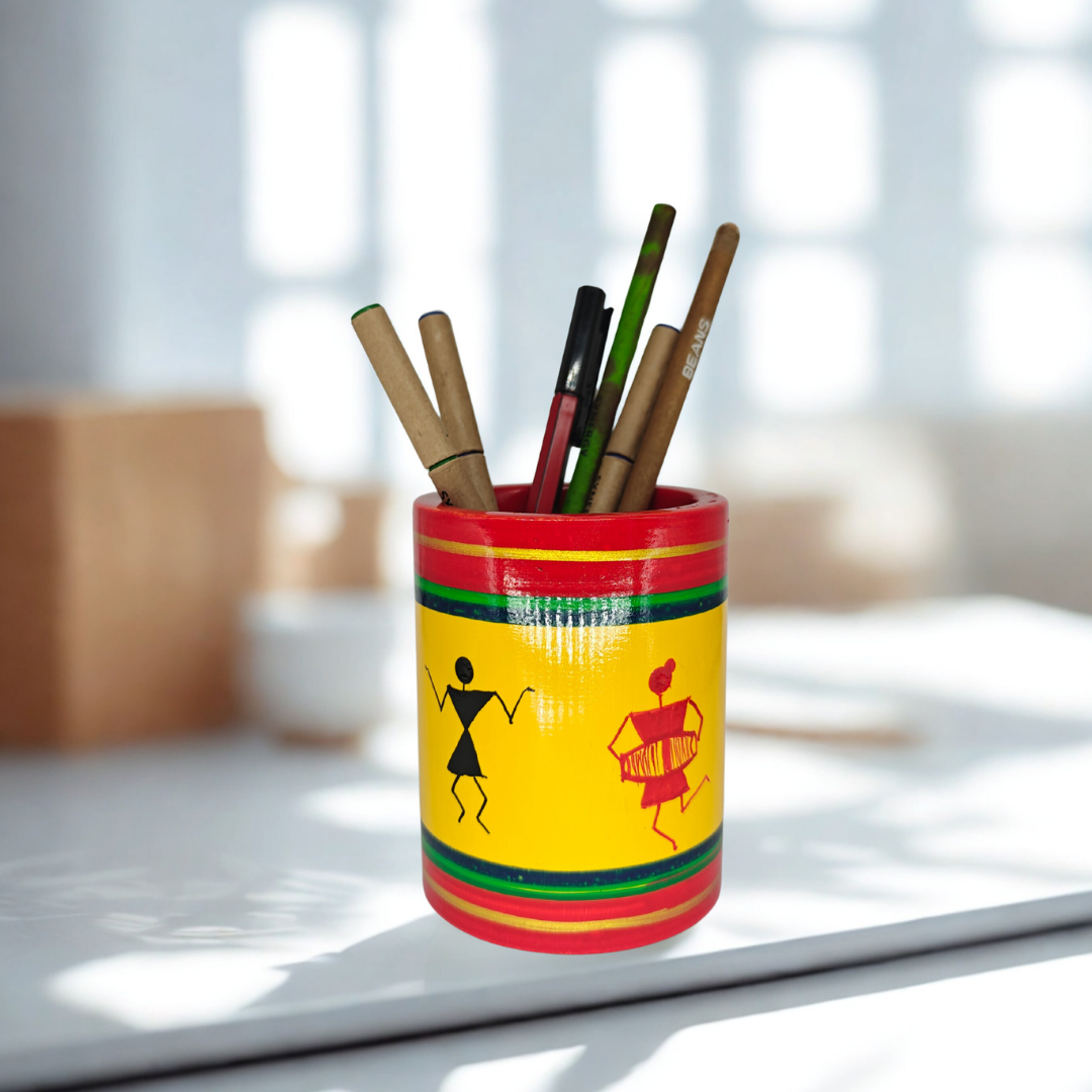 Crafted from eco-friendly wood and natural colors, this pen stand is not just an accessory but also a symbol of sustainable Indian handicrafts.