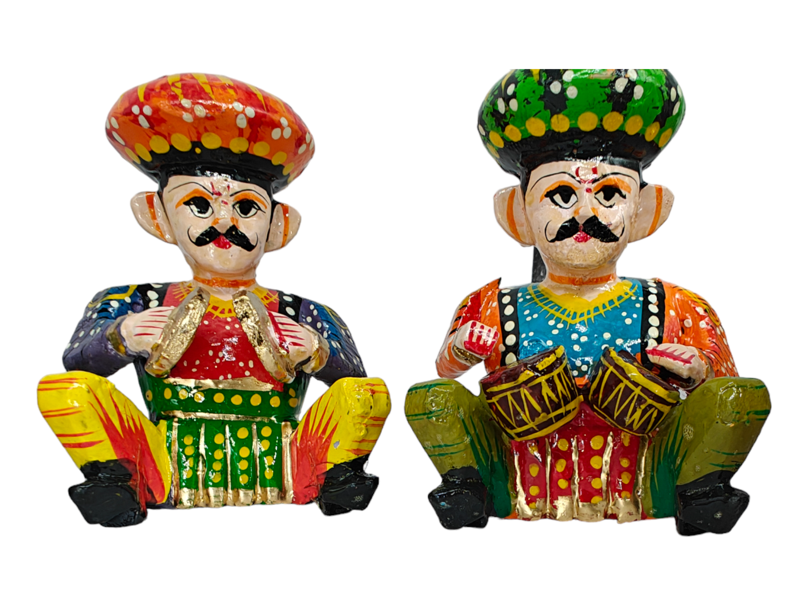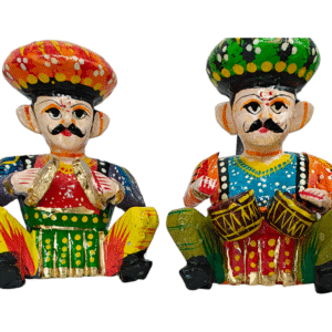 With each figurine measuring 9.5 cm in length and 6.5 cm in width, this set perfectly captures the essence of Rajasthani folk culture. A must-have for lovers of Indian handicrafts, it is ideal for home décor, office desks, festive decoration, or gifting.