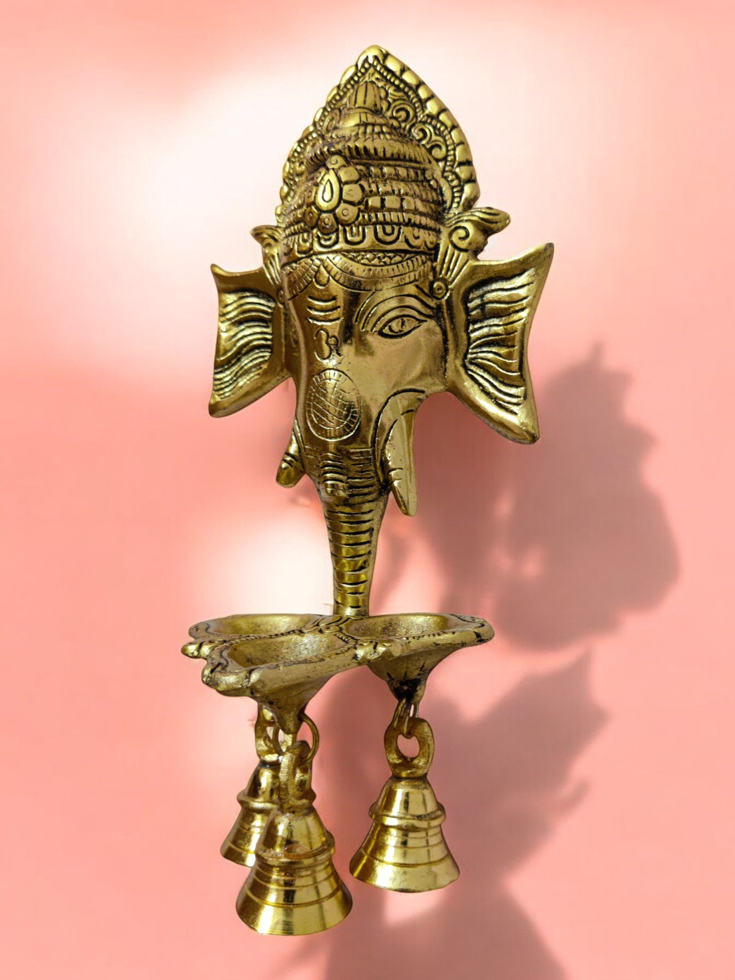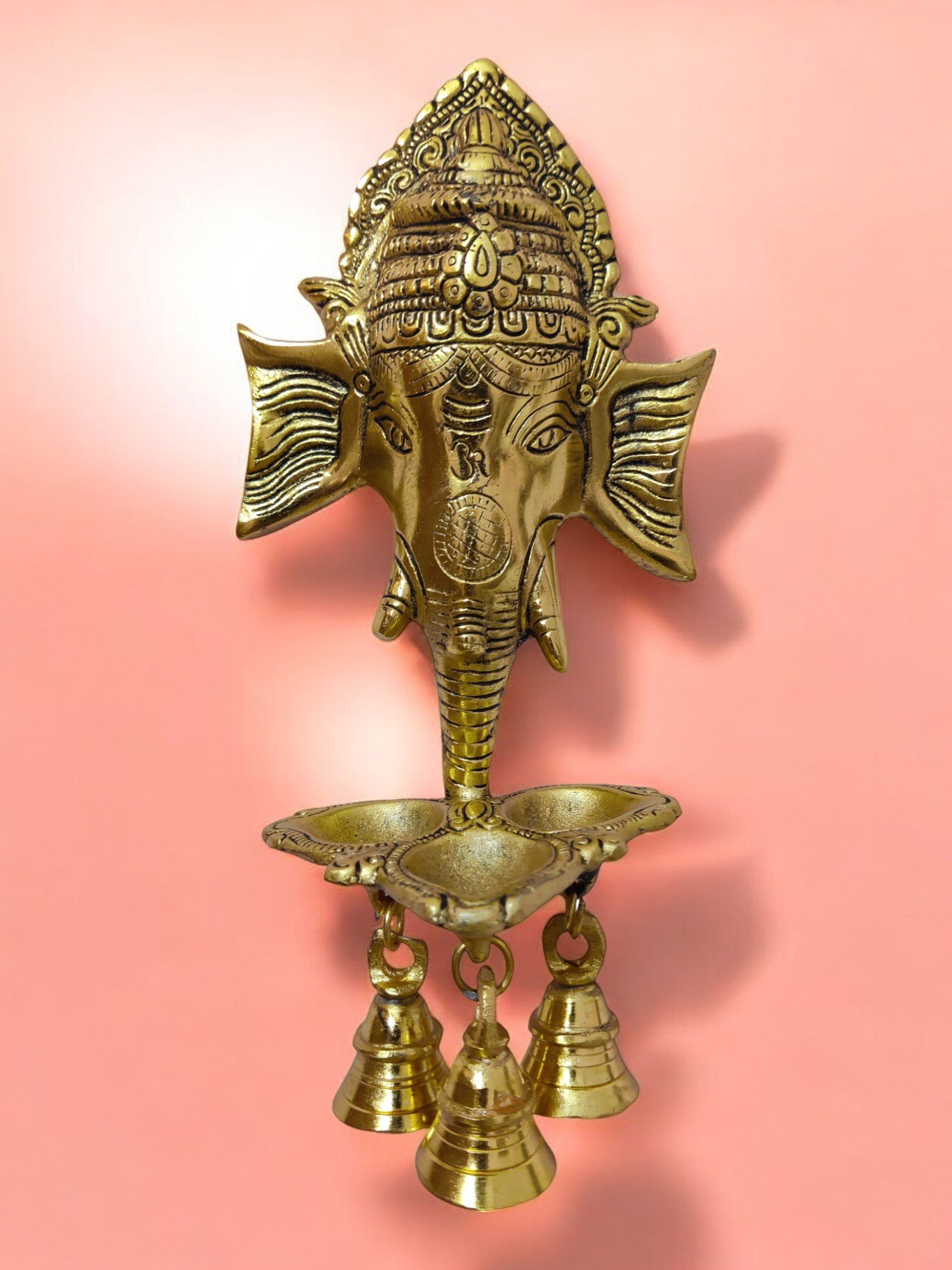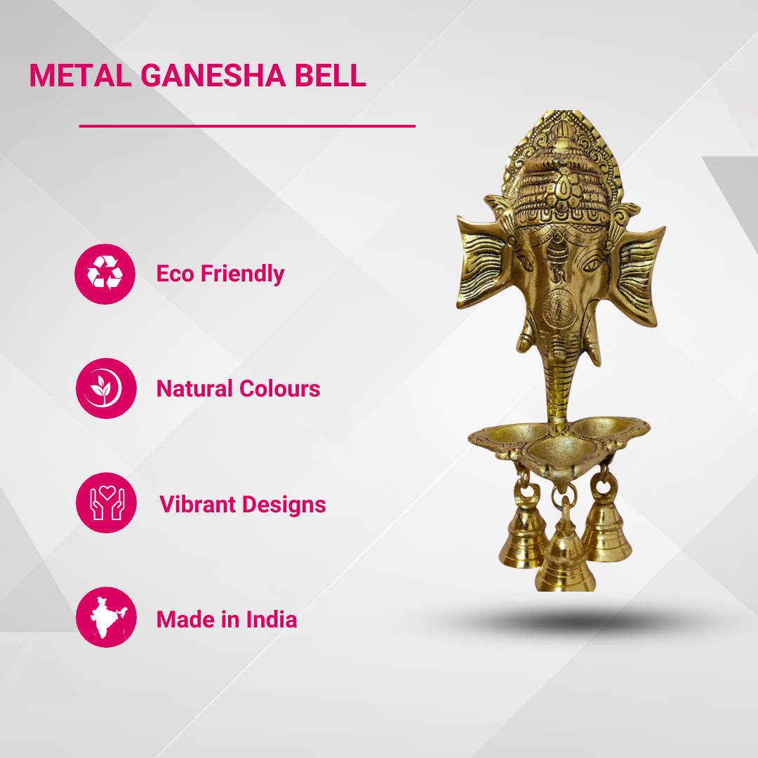 Enhance the divine aura of your home with this beautifully crafted White Metal Ganesha Bell. Designed in golden finish, this wall-hanging piece features Lord Ganesha with intricate detailing and bells that create a soothing sound. Perfect for pooja use, wall décor, or as a spiritual gift, this eco-friendly metal craft combines traditional artistry with durability. A sacred symbol of prosperity and positivity, it brings elegance to any corner of your home or office.